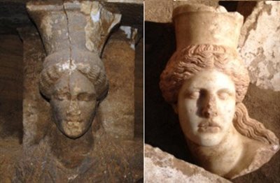 Συγκεκριμένα, οι αρχαιολόγοι βρήκαν ένα μοναδικής ομορφιάς μαρμάρινο κεφάλι, με μορφή νέας γυναίκας, που ανήκει σε μία από τις δύο Σφίγγες που στέκουν φρουροί μπροστά από τον τάφο.