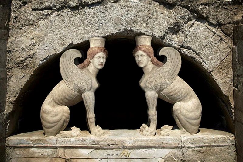 Δείτε τις εντυπωσιακές φωτογραφίες από μια ολοκληρωμένη αναπαράσταση των Σφιγγών που κοσμούν την είσοδο του μεγαλοπρεπή Τύμβου Καστά