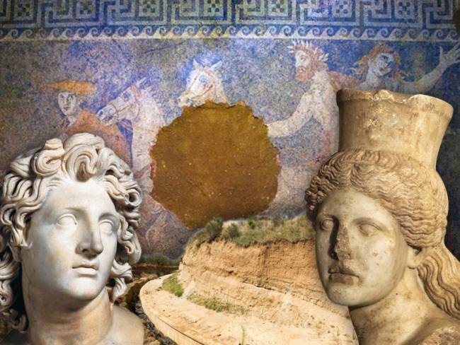 Μία εντυπωσιακή έγχρωμη αναπαράσταση του ψηφιδωτού που απεικονίζει την αρπαγή της Περσεφόνης στο ταφικό μνημείο της Αμφίπολης δημιούργησε ο ζωγράφος Γεράσιμος Γερολυμάτος.