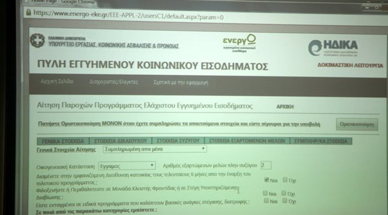 Η ιστοσελίδα energo-eke.gr, στην οποία οι δικαιούχοι μπορούν να υποβάλουν αιτήσεις προκειμένου να εισπράξουν το ελάχιστο εγγυημένο εισόδημα που ξεκινά να εφαρμόζεται πιλοτικά σε 13 δήμους, βρέθηκε εκτός λειτουργίας από το βράδφυ του Σάββατου, ενώ η λειτουργία της αποκαταστάθηκε λίγο πριν τις 11.00 το πρωί της Κυριακής.