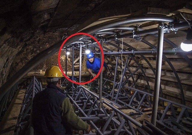 Μπορεί η συγκεκριμένη φωτογραφία να είναι τραβηγμένη ανάποδα και το άνοιγμα που φαίνεται πίσω από τον εργάτη με την μπλε μπλούζα να είναι το άνοιγμα που είχε βρεθεί στον τρίτο διαφραγματικό τοίχο , όπου βρίσκεται η μαρμάρινη είσοδος;