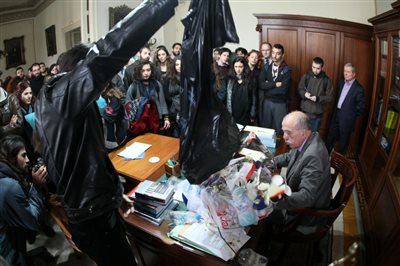 Φοιτητές γέμισαν με σκουπίδια το γραφείο του Φορτσάκη στην Πρυτανεία