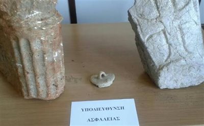 Μέσα στους χώρους, ανακάλυψαν συνολικά ένα τμήμα πήλινου πώματος από αγγείο των Ελληνιστικών χρόνων, ένα λίθινο αρχιτεκτονικό μέλος των παλαιοχριστιανικών χρόνων και άλλο ένα λίθινο αρχιτεκτονικό μέλος -συγκεκριμένα ένα τμήμα πεσσού, των Κλασικών και Ελληνιστικών χρόνων. Όλα τα αντικείμενα εξετάστηκαν από αρχαιολόγο που αποφάνθηκε ότι εμπίπτουν στις προστατευτικές διατάξεις του νόμου.