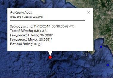 Σεισμός 3,8R ανοιχτά της Πύλου