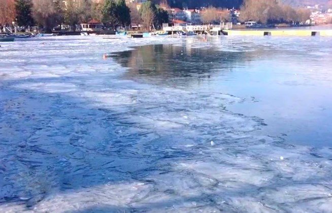 Πάγωσαν τα νερά της Λίμνης της Καστοριάς λόγω του κρύου που επικρατεί ως αποτέλεσμα του προσφάτου χιονιά. Είναι χαρακτηριστικό ότι την πέμπτη η υψηλότερη θερμοκρασία που καταγράφηκε στην πόλη ήταν 0 βαθμοί Κελσίου, ενώ τη νύχτα αναμένεται να βρεθεί στους μείον 5 βαθμούς.