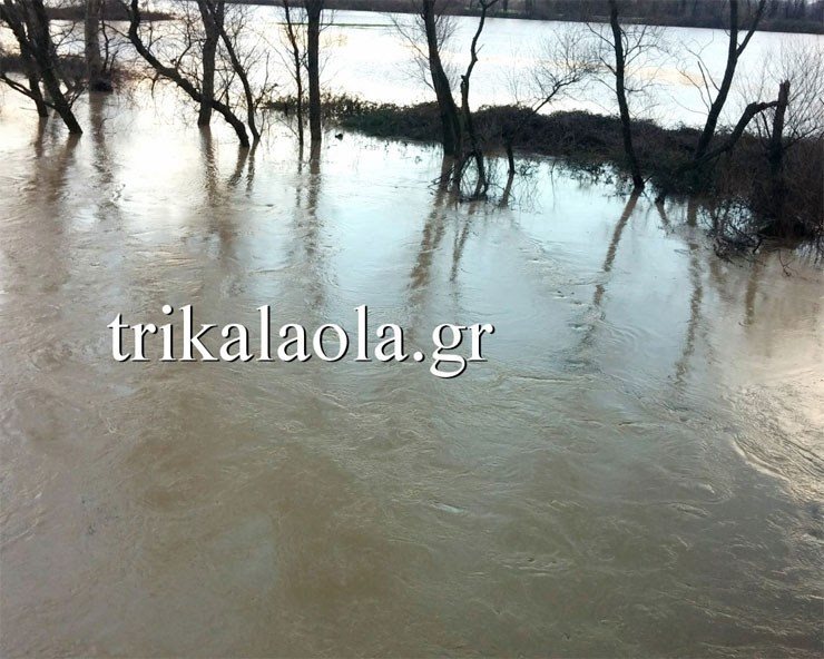 Εκατομμύρια κυβικά νερού, κατεβάζει αυτή την ώρα ο Πηνειός ποταμός και οι παραπόταμοί του στα Τρίκαλα.