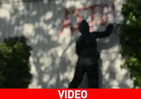 Φορώντας μαύρα κράνη έγραψαν συνθήματα με σπρέι στην εξωτερική περίφραξη και προκάλεσαν φθορές με βαριοπούλες στα αλεξίσφαιρα τζάμια των εξωτερικών φυλακίων της οικίας.