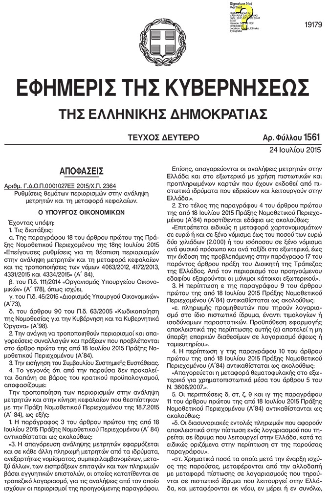 Το βράδυ της Παρασκευής εκδόθηκε τελικά η νέα Πράξη Νομοθετικού Περιεχομένου, με την οποία επιχειρείται να δοθεί μια ανάσα στην οικονομική ασφυξία που αντιμετωπίζουν οι επιχειρήσεις μετά το κλείσιμο των τραπεζών και την επιβολή capital control.