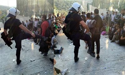 Εικόνες ντροπής στη Λέσβο-Αστυνομικός κλωτσά μετανάστες