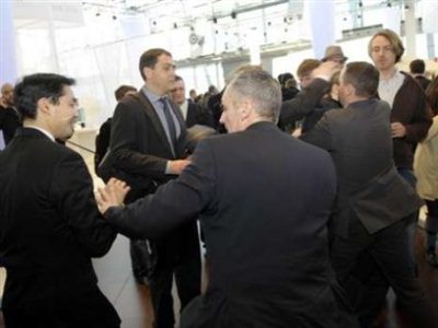 Ο αντικαγκελάριος γέλασε αμήχανα, ενώ μέσα σε δευτερόλεπτα μετά την επίθεση οι αστυνομικοί ακινητοποίησαν τον 25χρονο.