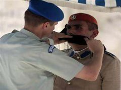 Στο καθήκον: Οι φωτογραφίες με τον Εύζωνα στην αποπνικτική Αθήνα