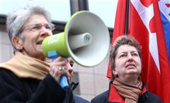Στην πλατεία του Ζάγκρεμπ στην Κροατία εργαζόμενοι της εταιρείας HT...