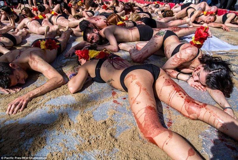 Οι ακτιβίστριες ουσιαστικά απάντησαν σε μια συγκέντρωση που έγινε στη Βαλένθια υπέρ της διατήρησης του εθίμου, των ταυρομαχιών στην Ισπανία.