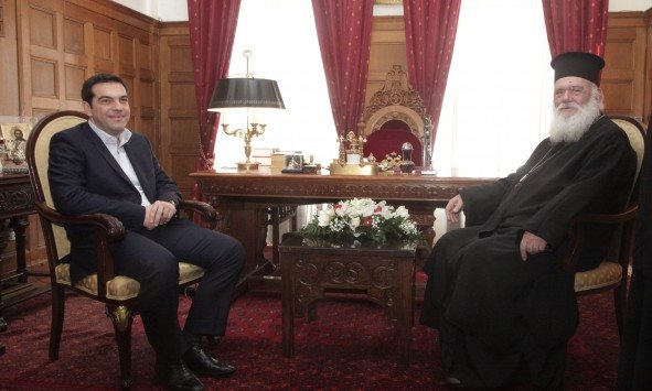 «Θέλω ειλικρινή συνεργασία κυβέρνησης και Εκκλησίας αλλά πάνω στους διακριτούς ρόλους των δυο πλευρών» ήταν η απάντηση του πρωθυπουργού.