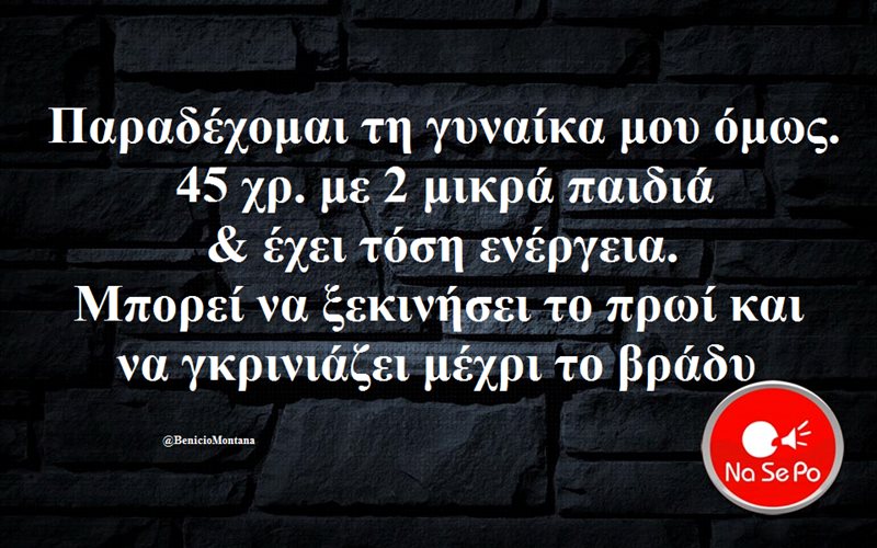 Παραδέχομαι τη γυναίκα μου όμως.