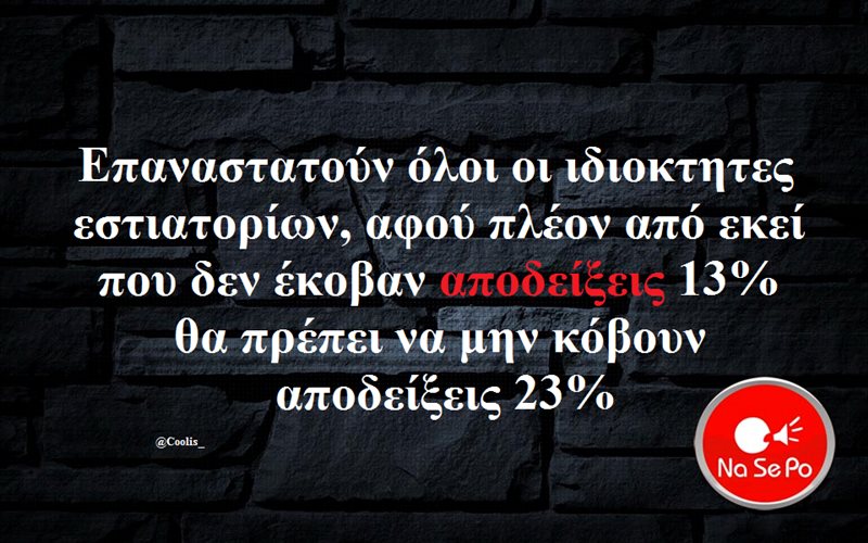 Επαναστατούν όλοι οι ιδιοκτητες εστιατορίων