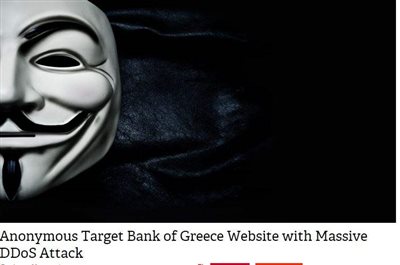 Θύμα των Anonymous έπεσε η Τράπεζα της Ελλάδος οπως αναφέρεται σε δημοσιεύματα του διεθνούς Τύπου.