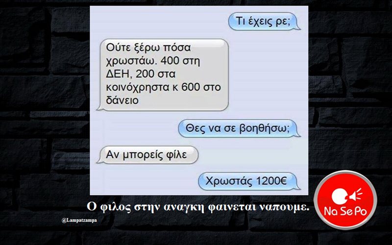 στην αναγκη φαινεται ναπουμε.
