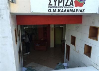 Επίθεση δέχτηκαν τα γραφεία του ΣΥΡΙΖΑ Καλαμαριάς