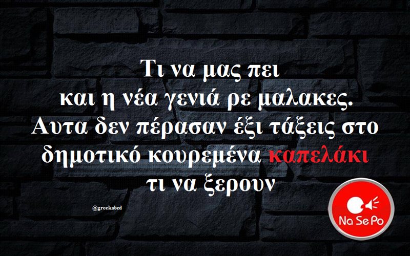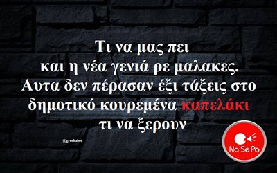 Τι να μας πει και η νέα γενιά ρε μαλακες.