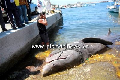 Για να μεταφερθεί στο λιμάνι χρειάστηκε η συνδρομή άλλων δυο ψαρόβαρκων και όπως γίνεται πάντα σε αυτές τις περιπτώσεις το ψάρι βγήκε στη ράμπα της μαρίνας για να τεμαχιστεί, αφού πρώτα το δει ο κόσμος και το απαθανατίσει.