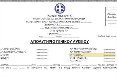 Το Θρήσκευμα και στο νέο τύπο Απολυτηρίου Λυκείου