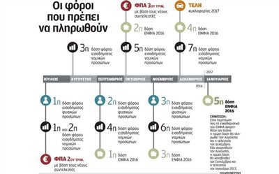 Ειδικότερα, οι φόροι ύψους 12-13 δισ. ευρώ που θα καταβληθούν το δεύτερο εξάμηνο το έτους κατανέμονται ως εξής: