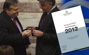 Ύφεση, ανεργία και υψηλοί φόροι είναι το τρίπτυχο του 2012 για την ελληνική οικονομία. Σύμφωνα με το κείμενο του προϋπολογισμού που κατατέθηκε στην Βουλή μετά την έγκριση του από το υπουργικό συμβούλιο η ύφεση προβλέπεται να περιοριστεί στο 2,8%, η ανεργία αναμένεται να υπερβεί το 17% και οι νέοι φόροι να φτάσουν τα 12 δισ. ευρω.Ο κ. Ευάγγελος Βενιζέλος εξέφρασε την αισιοδοξία του ότι ξεκινά «η αντίστροφη πορεία της χώρας προς τα πρωτογενή πλεονάσματα». Ο υπουργός στάθηκε σε τέσσερα σημεία που χαρακτηρίζουν τον νέο προϋπολογισμό:- Είναι ο προϋπολογισμός πρωτογενούς πλεονάσματος. Υπολογίζουμε να ανέλθουν σε 1,1% του ΑΕΠ- Είναι ο προϋπολογισμός της μείωσης του δημοσίου χρέους με την εφαρμογή της απόφασης της 26ης Οκτωβρίου- Δεν θα συνοδευτεί από νέα νομοσχέδια με μέτρα φορολογικά και εισπρακτικά. Πρέπει να απαλύνουμε τις δυσκολίες και να σταθούμε σε εκείνους που έχουν ανάγκη με αίσθηση εθνικής ευθύνης.- Βασίζεται σε αυστηρές εκτιμήσεις , δεν στηρίζεται σε εικονικά στοιχεία. Παρά την πρόβλεψη για βελτίωση των δημοσιονομικών μεγεθών, η πραγματική οικονομία θα συνεχίσει να κινείται σε συνθήκες ασφυκτικής πίεσης την οποίαυποθάλπουν η σκληρή λιτότητα των τελευταίων ετών, η οποία θα συνεχιστεί και το επόμενο έτος, αντανακλώντας άμεσα και ευθέως στην κατανάλωση και τηνύφεση.Συγκεκριμένα προβλέπεται ότι η ελληνική οικονομία, έπειτα από ύφεση 5,5% φέτος θα συρρικνωθεί περαιτέρω κατά 2,8%, με την ανεργία στο 17,1% του εργατικούδυναμικού, την ιδιωτική κατανάλωση να υποχωρεί κατά 4,1%, τις επενδύσεις να μειώνονται κατά 7,5%. Στα θετικά, σημειώνονται η αποκλιμάκωση του πληθωρισμού στο 0,6% (αν και οι λόγοι που οδηγούν στην πτώση κάθε άλλο παρά θετικοί είναι), η αύξηση τωνεξαγωγών κατά 6,4% και η μείωση των εισαγωγών κατά 2,8% (με τις αντίστοιχες ενστάσεις ως προς τους λόγους που οδηγούν σε αυτές τις επιδόσεις).Στο μέτωπο των φορολογικών εσόδων, προβλέπεται αύξηση 3,599 δισ. ευρώ (από τα 49,702 δισ. ευρώ στα 53,301 δισ. ευρώ) ενώ οι πρωτογενείς δαπάνες θαμειωθούν κατά 2,745 δισ. ευρώ (από τα 51,830 δισ. ευρώ στα 49,702 δισ. ευρώ). Να σημειωθεί ότι με τον προϋπολογισμό προαναγγέλλεται κατάργηση του Κώδικα Βιβλίων και Στοιχείων.Ο νέος προϋπολογισμός ενσωματώνοντας τις αποφάσεις της 26ης Οκτωβρίου προβλέπει κάθετη πτώση του δημοσίου χρέους από τα 352,050 δισ. ευρώ ή 161,7%του ΑΕΠ που προβλέπεται για φέτος, στα 309,300 δισ. ευρώ ή 145,5% του ΑΕΠ, με τις δαπάνες τόκων να υποχωρούν κατά 3,630 δισ. ευρώ από τα 16,380 δισ.ευρώ φέτος στα 12,750 δισ. ευρώ το 2012. Κατακόρυφη πτώση προβλέπεται και για το δημοσιονομικό έλλειμμα παρά το γεγονός ότι φέτος θα καταγραφεί σημαντική απόκλιση. Από 9% του ΑΕΠ, θαυποχωρήσει στο 5,4% του ΑΕΠ το 2012 και σε απόλυτα μεγέθη από τα 19,683 δισ. ευρώ θα διαμορφωθεί σε 11,427 δισ. ευρώ. Ο νέος προϋπολογισμός θα πρέπει να έχει ψηφιστεί από την Ολομέλεια της Βουλής πριν από την επόμενη Σύνοδο Κορυφής της ΕΕ (8-9 Δεκεμβρίου) ενώ ο πρόεδρος της Βουλής Φίλιππος Πετσάλνικος πρότεινε να ξεκινήσει η συζήτησή του στην Ολομέλεια την 3η Δεκεμβρίου και να ψηφιστεί στις 7 του επόμενου μήνα. Πορεία δημόσιου χρέουςΣύμφωνα με όσα αναφέρονται στην εισηγητική έκθεση του νέου προϋπολογισμού, το χρέος της κεντρικής διοίκησης στο τέλος του έτους 2011 εκτιμάται ότι θα ανέλθει στα 364.600 εκατ. ευρώ ή 167,4% του ΑΕΠ, έναντι 340.285 εκατ. ευρώ ή 149,7% του ΑΕΠ το 2010, παρουσιάζοντας αύξηση το 2011 κατά 17,7% περίπου του ΑΕΠ. Το έτος 2012 το ύψος του χρέους της