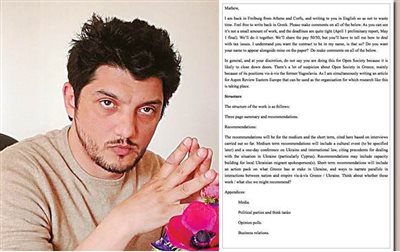Το ηλεκτρονικό αυτό μήνυμα αποτελεί μέρος δεκάδων χιλιάδων ευαίσθητων εγγράφων και προγραμμάτων που έφερε στην επιφάνεια μία αμερικανική ομάδα χάκερ ακτιβιστών που ονομάζονται DCLeaks. Οπως υποστηρίζουν, ακολουθούν το παράδειγμα των WikiLeaks υποκλέπτοντας μυστικά έγγραφα. Με τον τρόπο αυτό θέλουν «να παρουσιάζουν την αλήθεια που κρύβεται πίσω από τις πολιτικές αποφάσεις». Στο στόχαστρό τους μπήκε ο παντοδύναμος επιχειρηματίας και λομπίστας Σόρος και το ίδρυμά του για μία περίοδο οκτώ ετών (μεταξύ του 2008 και του 2016) και η δράση του σε 40 χώρες. Σε αυτές συγκαταλέγεται και η Ελλάδα, στην οποία έγινε ευρέως γνωστός από την εμπλοκή του στην υπόθεση των Σκοπίων. Επαιξε, άλλωστε, έναν ιδιαίτερα αρνητικό ρόλο για την Ελλάδα όχι μόνο ως γενναιόδωρος χρηματοδότης, αλλά και ως παράγοντας που λειτούργησε ως πολιτικός λομπίστας υπέρ της ΠΓΔΜ. Δεν είναι τυχαίο ότι στα Σκόπια τον έχουν αποκαλέσει «σωτήρα της “Μακεδονίας”». Ενας Ελληνας ερευνητής θα μπορούσε να προσπεράσει χωρίς να δώσει ιδιαίτερη σημασία το επίμαχο έγγραφο. Είναι, άλλωστε, ένα από τα χιλιάδες ηλεκτρονικά μηνύματα που βρίσκονται στην κατηγορία «Ουκρανία». Η συνομιλία, εξάλλου, μοιάζει να μην έχει ιδιαίτερο ενδιαφέρον για το ελληνικό κοινό. Αυτό θα ίσχυε, όμως, μόνο στην περίπτωση που ο παραλήπτης του δεν ήταν ο γνωστός Ματθαίος Τσιμιτάκης.