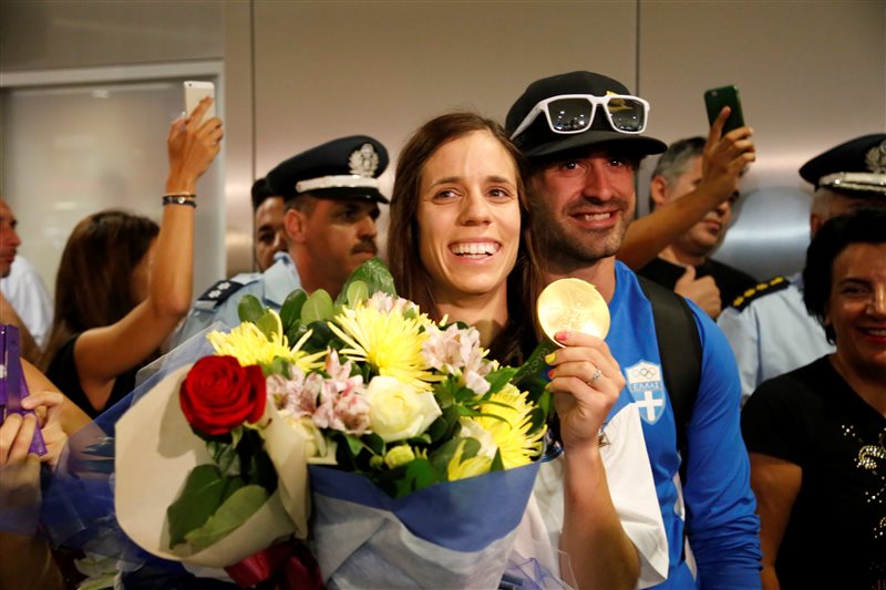Η Ελληνίδα πρωταθλήτρια, θα προσγειώθηκε στην Ελλάδα στις 16:35 μαζί με τον προπονητή και άντρα της, Μίτσελ Κρίερ.