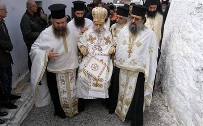 Καθιστός στο θρόνο του ο νεκρός Επίσκοπος Φθιώτιδας