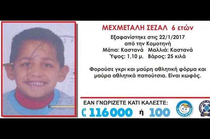 Η αναζήτηση του 6χρονου Μεχμεταλή Σεζάλ δυστυχώς είχε τραγική κατάληξη, καθώς βρέθηκε σήμερα νεκρός. Τα αίτια θανάτου θα ανακοινωθούν από τις αρμόδιες αρχές.