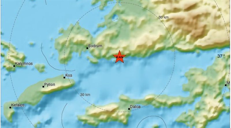 Το Αμερικανικό Γεωλογικό Παρατηρητήριο (USGS) ανακοίνωσε πως η σεισμική δόνηση είχε μέγεθος 5,3 Ρίχτερ και σημειώθηκε κοντά στο Μπόντρουμ (Αλικαρνασσός) της Τουρκίας.