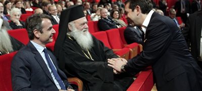 Το ίδιο πρωί, ο πρόεδρος της ΝΔ συναντήθηκε με τον Αρχιεπίσκοπο και σύμφωνα με τις ίδιες πληροφορίες έγινε ο εξής διάλογος: