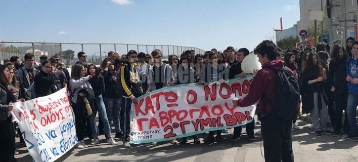 Με βασικό σύνθημα «Ούτε να το σκέφτεστε - Το νομοσχέδιο ΣΥΡΙΖΑ-Γαβρόγλου να μην κατατεθεί» οι περίπου 150 συγκεντρωμένοι μαθητές σημειώνουν σε σχετική ανακοίνωση που εξέδωσαν: «Είναι βαθιά γελασμένοι, εκεί στο υπουργείο, αν νομίζουν πως θα δεχτούμε ένα νομοσχέδιο που κάνει χειρότερο το σχολείο μας. Με περισσότερες εξετάσεις, άρα και περισσότερα φροντιστήρια για να τα βγάλουμε πέρα. Με εξετάσεις πανελλαδικού τύπου, ακόμα και για να πάρουμε απολυτήριο. Με αύξηση της ύλης των πανελλαδικών εξεταζόμενων μαθημάτων ακόμα και για του χρόνου. Με λιγότερη γνώση, λιγότερη μόρφωση».