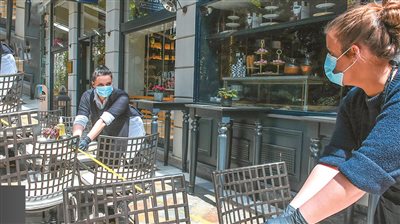 Στο καφέ-εστιατόριο «I Frati» στην Κηφισιά, ιδιοκτήτες και προσωπικό προβάρουν την επόμενη μέρα ξανά και ξανά. Βγάζουν τη μεζούρα, μετρούν την απόσταση που θα χωρίζει το ένα τραπέζι από το άλλο, σπαζοκεφαλιάζουν στις αριθμητικές πράξεις για να υπολογίζουν τη ζημιά, διακοσμούν τα τραπέζια και με... αντισηπτικά.