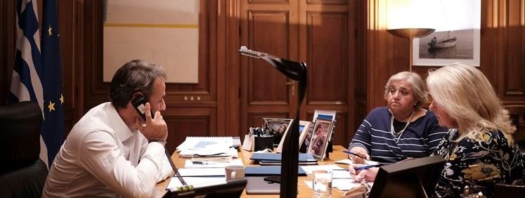 Στο Μαξίμου αργά χθες το απόγευμα έφτασε από την πρεσβεία των ΗΠΑ στην Αθήνα ειδική τηλεφωνική συσκευή αποκρυπτογράφησης για την συνομιλία του πρωθυπουργού με τον Ντόναλντ Τράμπ. Εκείνη την στιγμή στο γραφείο του Κυριάκου Μητσοτάκη ήταν η επικεφαλής του διπλωματικού γραφείου του πρωθυπουργού Ελένη Σουρανή αλλά και η πρέσβης της Ελλάδας στις ΗΠΑ Αλεξάνδρα Παπαδοπούλου. Οι δύο κυρίες μετείχαν και στην σύσκεψη που είχε πραγματοποιηθεί για την προετοιμασία της πρόσφατης συνάντησης του Νίκου Δένδια με τον Μάικ Πομπέο στην Βιέννη.