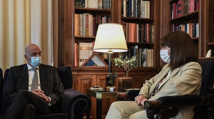 Συνάντηση με την Πρόεδρο της Δημοκρατίας, Κατερίνα Σακελλαροπούλου, είχε το πρωί της Τρίτης ο υπουργός Εξωτερικών, Νίκος Δένδιας, όπου την ενημέρωσε για την κατάσταση στην ανατολική Μεσόγειο και για τις συμφωνίες της Ελλάδας για την χάραξη ΑΟΖ με Ιταλία και Αίγυπτο.