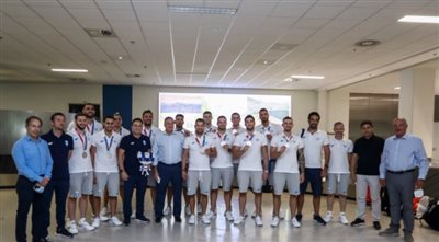 Οι «13» του Θοδωρή Βλάχου, με σύσσωμο το τεχνικό επιτελείο, δέχτηκαν υποδοχή από τους δικούς τους ανθρώπους, τον υφυπουργό Αθλητισμού Λευτέρη Αυγενάκη, τον Γ.Γ.Α, Γιώργο Μαυρωτά, αλλά και στελέχη της ΚΟΕ και φωτογραφήθηκαν με το μετάλλιο στο στήθος λίγο πριν πάνε στην αίθουσα VIP για την συνέντευξη Τύπου.