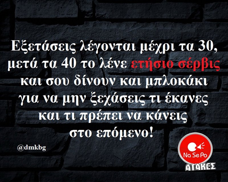 λέγονται μέχρι τα 30, μετά τα 40 το λένε ετήσιο σέρβις και σου δίνουν και μπλοκάκι για να μην ξεχάσεις τι έκανες και τι πρέπει να κάνεις στο επόμενο! @dmkbg