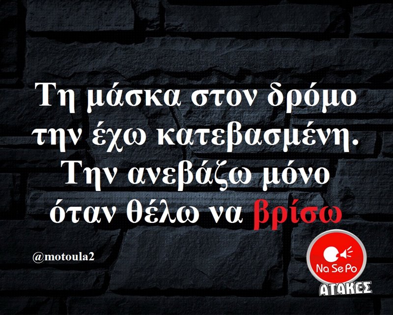 Τη μάσκα στον δρόμο την έχω κατεβασμένη.