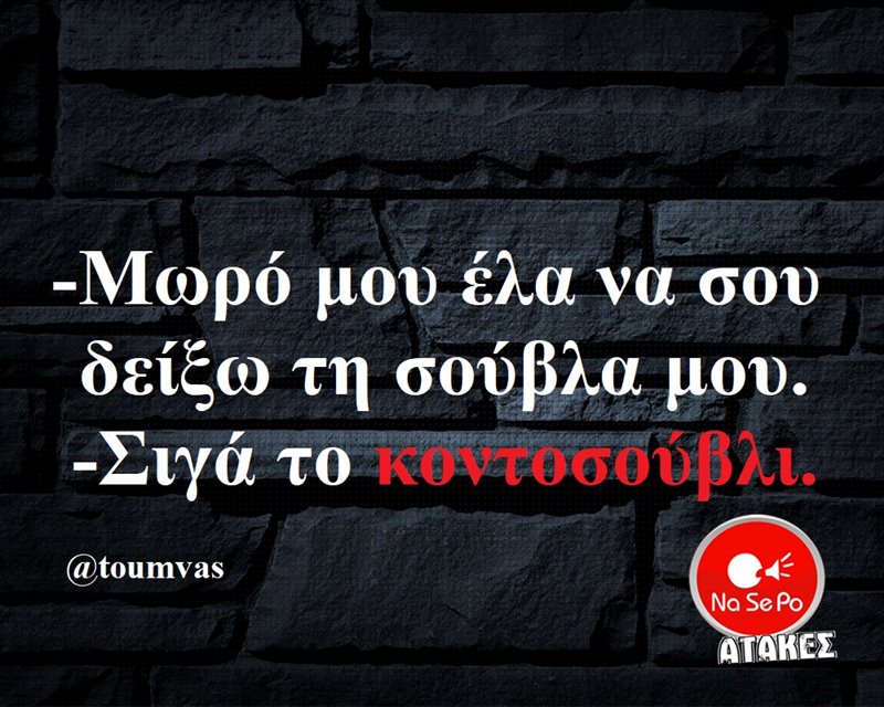 Μωρό μου έλα να σου δείξω τη σούβλα μου.