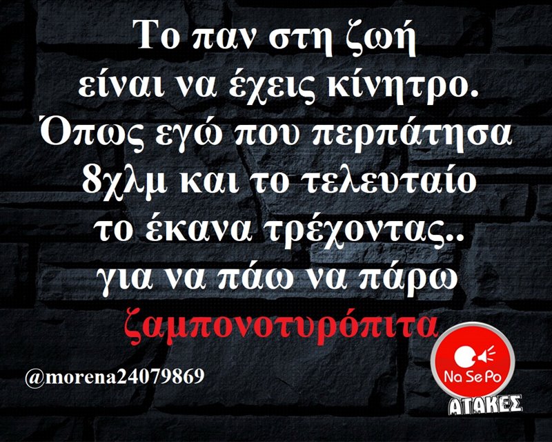Το παν στη ζωή είναι να έχεις κίνητρο. Όπως εγώ που περπάτησα 8χλμ και το τελευταίο το έκανα τρέχοντας... για να πάω να πάρω