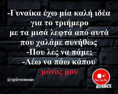 Γυναίκα έχω μία καλή ιδέα για το τριήμερο