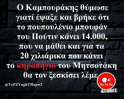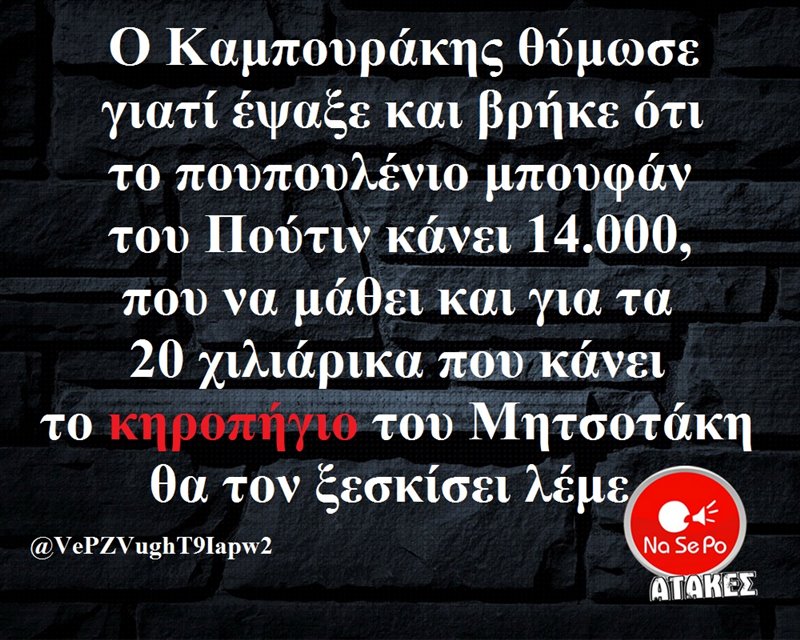 θύμωσε γιατί έψαξε και βρήκε ότι το πουπουλένιο μπουφάν του Πούτιν κάνει 14.000, που να μάθει και για τα 20 χιλιάρικα που κάνει το κηροπήγιο του Μητσοτάκη θα τον ξεσκίσει λέμε @VePZVughT9Iapw2