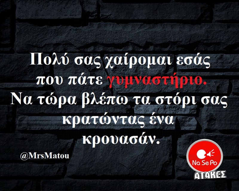 Πολύ σας χαίρομαι εσάς που πάτε γυμναστήριο.