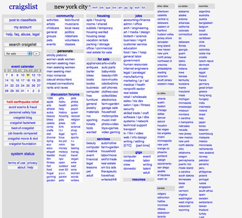 CraigslistΆλλαξε τις αγγελίες. Οι online σελίδες με αγγελίες ήταν σχεδόν άχρηστες. Μεταξύ του τεράστιου αριθμού spam δημοσιεύσεων και το γεγονός ότι υπήρχαν λίγες τοπικές λίστες στις περισσότερες περιοχές, δεν υπήρχε νόημα στο να χρησιμοποιούνται. Αλλά τότε το Craigslist δημιουργήθηκε και ξαφνικά άρχισε να συναγωνίζεται τις μικρές αγγελίες των τοπικών εφημερίδων. Τώρα μπορείς να χρησιμοποιήσεις το Craigslist για να βρεις σχεδόν οτιδήποτε, άσχετα με το που βρίσκεσαι.
