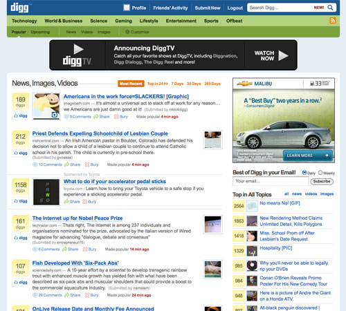 DiggΆλλαξε τον τρόπο με τον οποίο βρίσκουμε και μοιραζόμαστε ειδήσεις. ΤοDigg σχεδιάστηκε αρχικά σαν ένα πείραμα, αλλά έχει αλλάξει εντελώς τον τρόπο που πολλοί άνθρωποι βρίσκουν ειδήσεις online. Η ιδέα ότι οι χρήστες καθορίζουν ποιες ειδήσεις είναι σημαντικές, σχετικές και ενδιαφέρουσες αντί να το καθορίζουν συντάκτες ή στελέχη μεγάλων οργανισμών ειδήσεων ήταν επαναστατική.