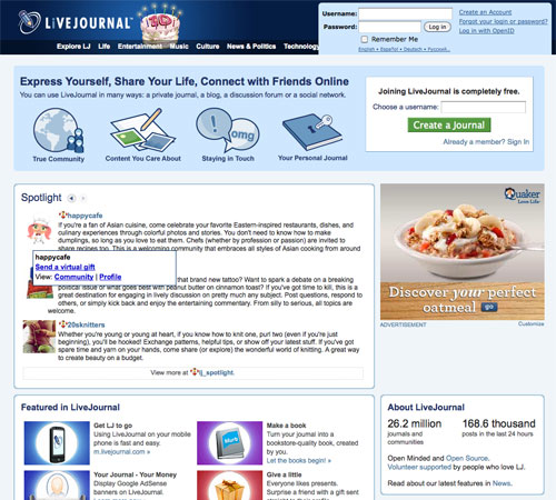 LiveJournalΈμαθε σε εκατομμύρια το blogging. Το Blogging δεν ανακαλύφθηκε από το LiveJournal, αλλά ήταν η πρώτη ιστοσελίδα που πρόσφερε δωρεάν blogs στα μέλη της. Εκατομμύρια χρησιμοποιούν το LiveJournal πλέον Και δεκάδες εκατομμύρια χρησιμοποιούν άλλα blogs αλλού, είτε σε άλλες σελίδες που φιλοξενούν blogs είτε σε δικές τους σελίδες. Αν δεν ήταν το LiveJournal και παρόμοιοι πάροχοι δωρεάν blogs που εμφανίστηκαν αργότερα, το blogging μπορεί να μην είχε γίνει αυτό το παγκόσμιο φαινόμενο που είναι τώρα.