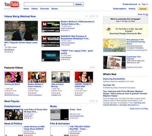 Άλλαξε την ψυχαγωγία. Πριν το YouTube, δεν υπήρχαν πολλές επιλογές αν ήθελες να δεις ένα βίντεο online. Μπορούσες μερικές φορές να βρεις ένα βίντεο εδώ ή εκεί, αλλά με το κόστος του bandwidth, ήταν πολύ λίγα και διάσπαρτα. Οι ιδιοκτήτες ιστοσελίδων δεν ήθελαν να πληρώνουν τις έξτρα χρεώσεις για φιλοξενία βίντεο. Στη συνέχεια έκανε την εμφάνιση του το YouTube και έκανε δωρεάν το να μπορείς να δημοσιεύεις ότι βίντεο ήθελες (αρκεί να μην είχε πνευματικά δικαιώματα και να ήταν πάνω από δέκα λεπτά σε διάρκεια). Οι χρήστες του διαδικτύου έχουν πλέον μια κεντρική θέση για να βλέπουν βίντεο online.